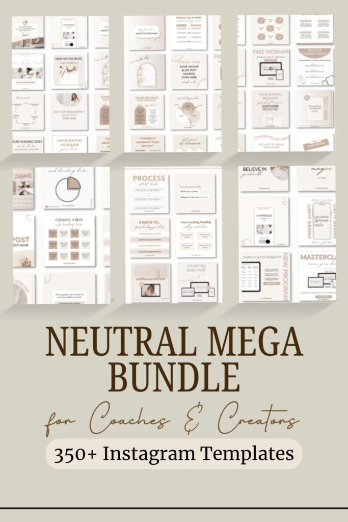 When you’re building a brand as a coach, course creator, or entrepreneur, consistency isn’t just nice to have — it’s the thing that builds trust and keeps people coming back. This Modern Instagram Post Templates Pack is an absolute powerhouse, packing over 350 templates into one neutral, versatile collection. We’re talking 271 feed posts and 100 story templates, all designed around a clean, modern aesthetic that lets your expertise shine without visual clutter. Tech mockups for promoting courses and webinars, quote cards for daily motivation, blog promo layouts, engaging notification-style posts, and even charts and graphs to position you as the go-to expert — every content pillar is covered.